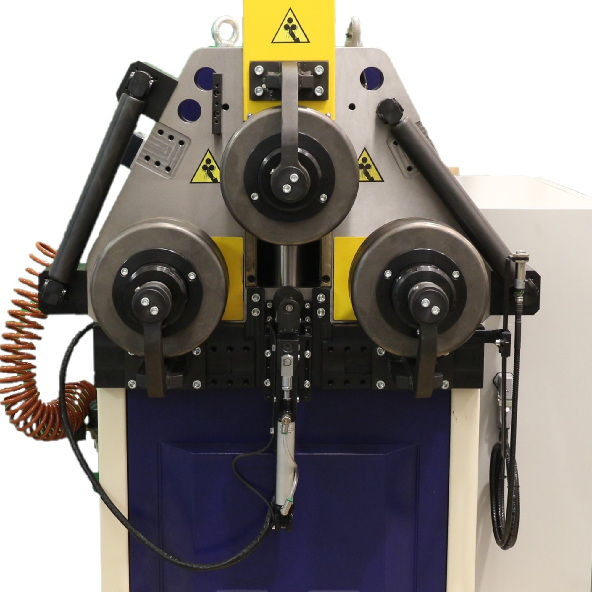 Double-adjustment straight-guide machine enables particularly tight radii to be made by reducing ovality of the pipe during bending,available both fully electric and hydraulic with and without interpolation