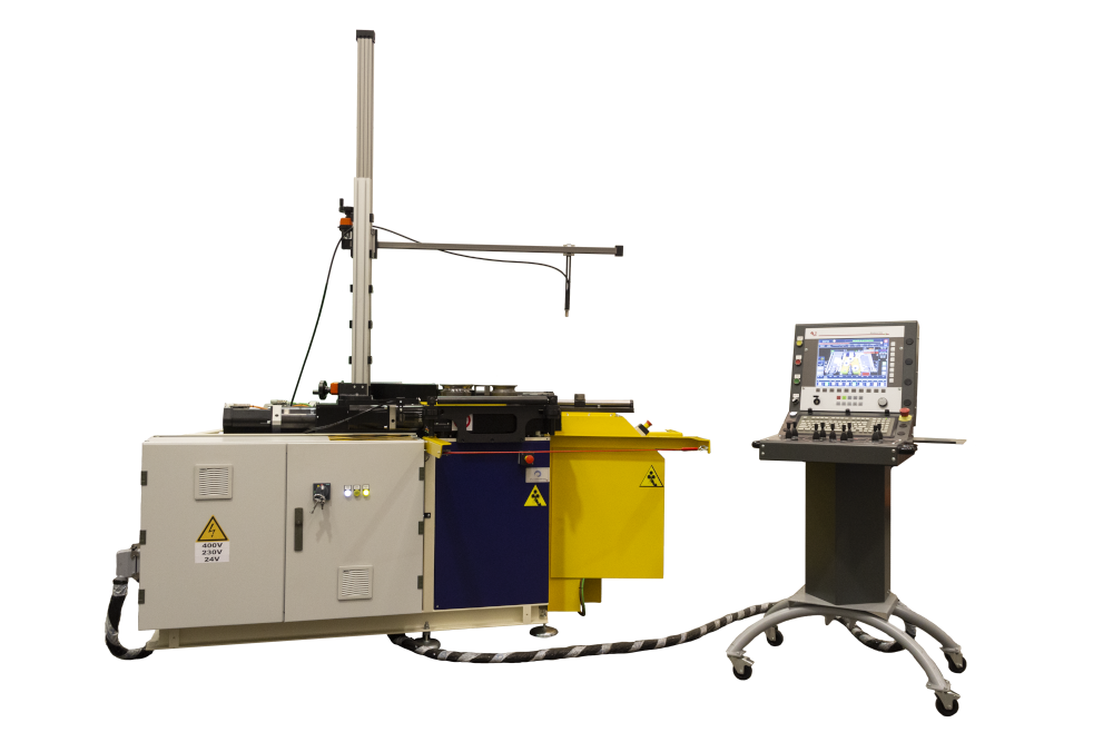Two-way bending machine unique in the industry optionable with tube rotation axis for 360° bends,available either fully electric or hydraulic